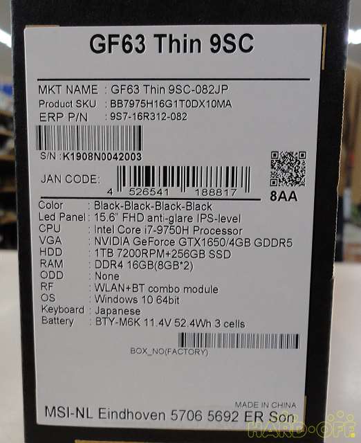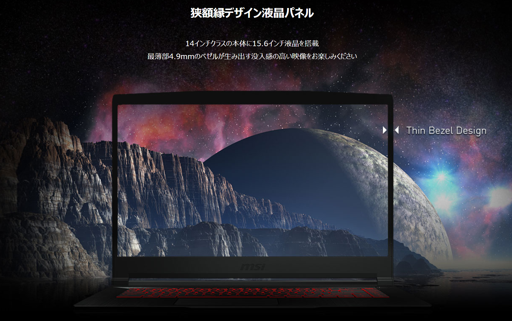 GF63 8RD-067JPはGeForce GTX 1050Ti Max-Qのグラフィックスを搭載していながら重量約 186kgとゲーミングPCとは思えない軽さです.